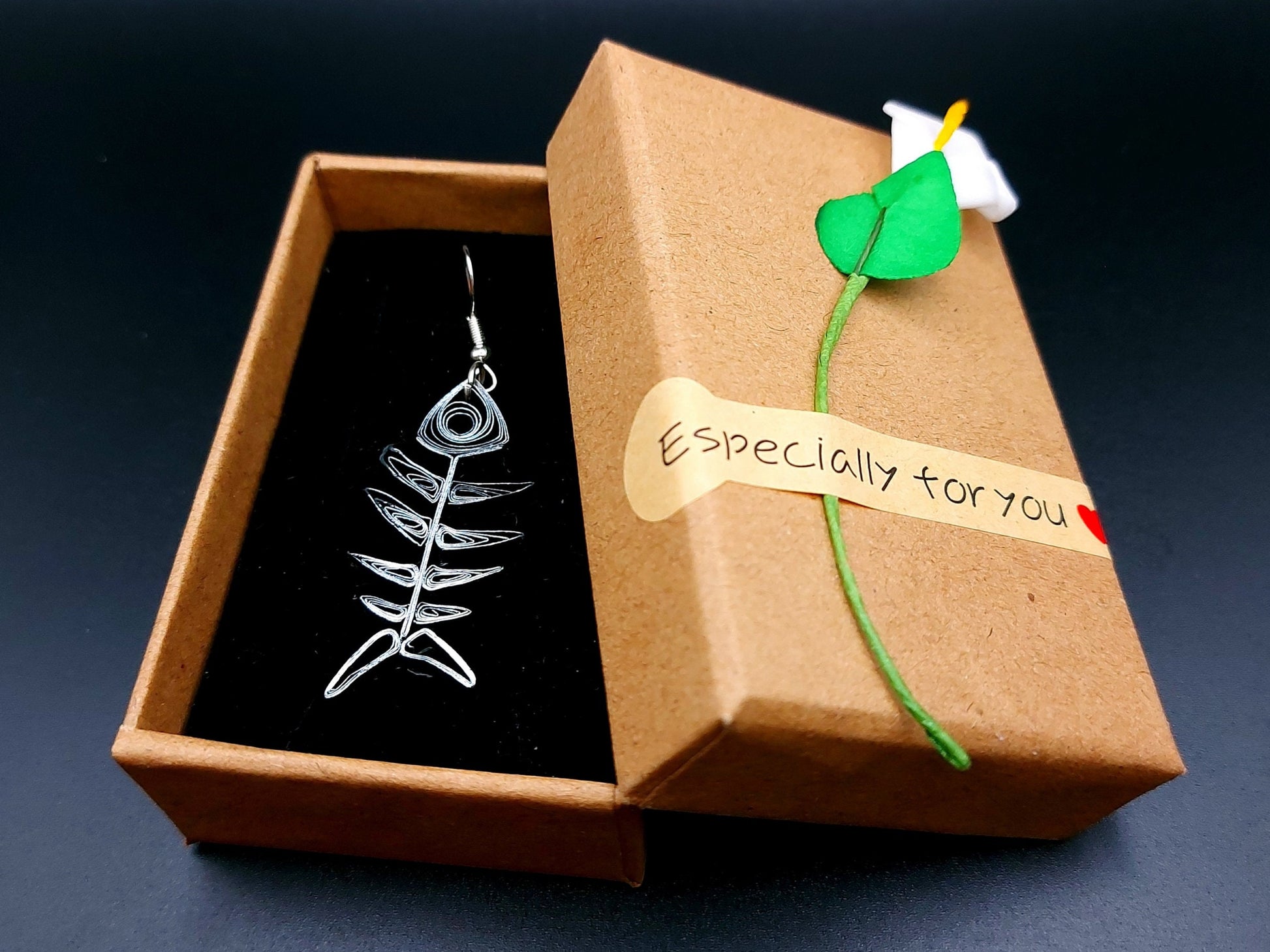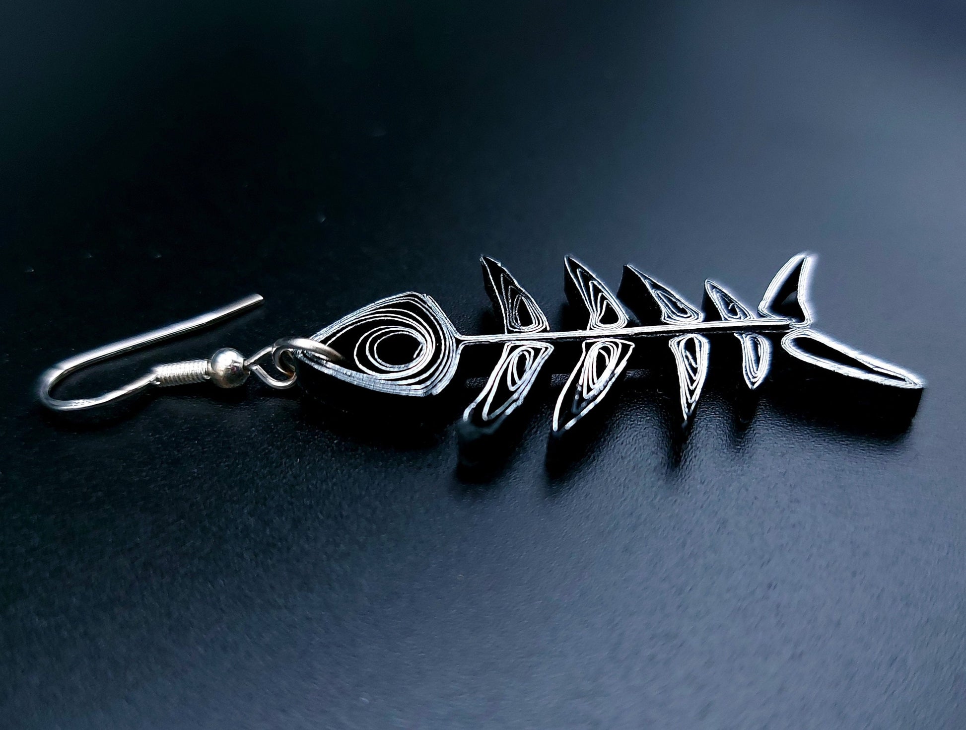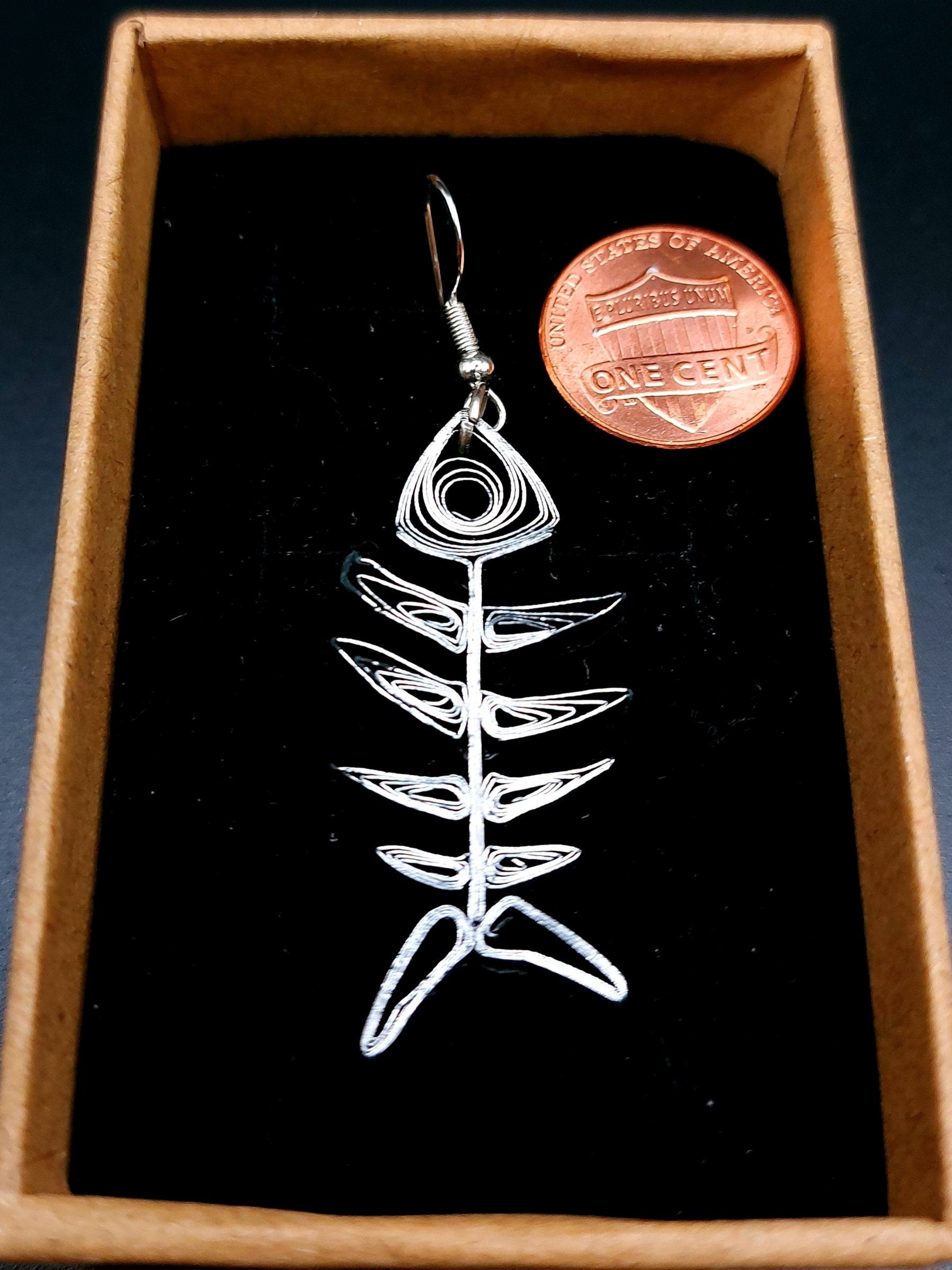 These beautiful hand crafted earrings are made from 1/8" thick quilling paper strips in silver edge black color. The sides and back of the earrings are black. They are attached to hypo-allergenic silver plated earring hooks.