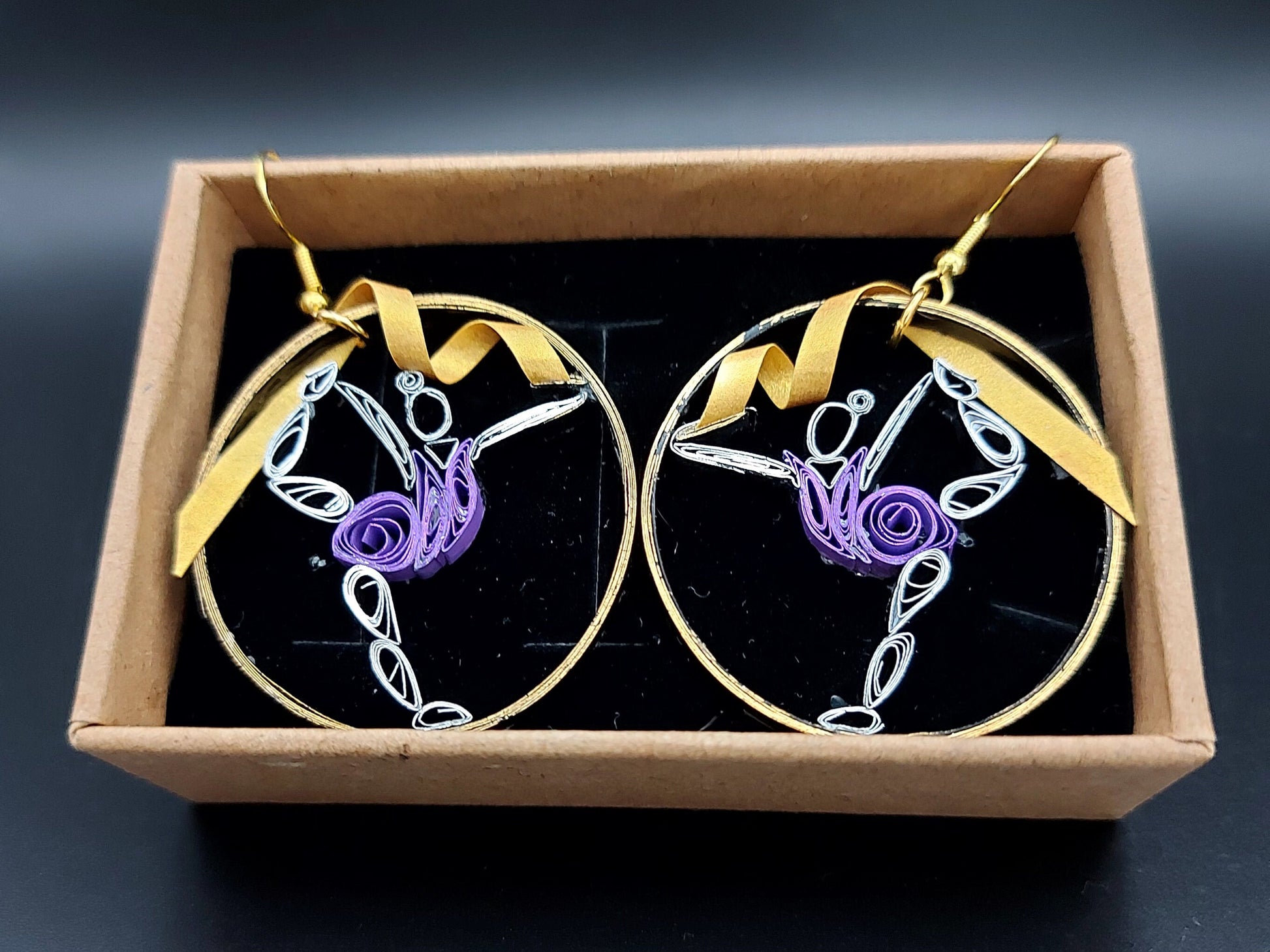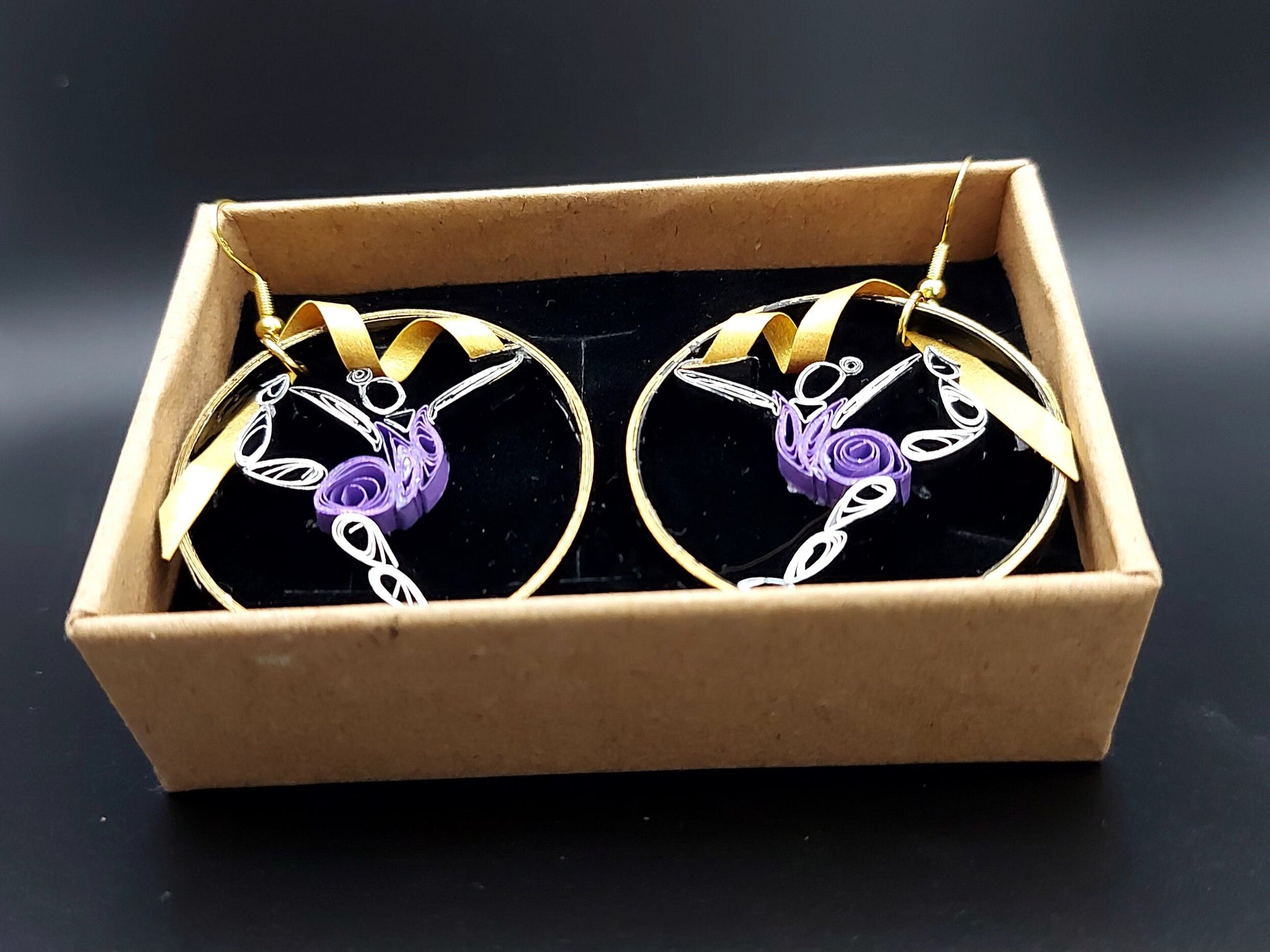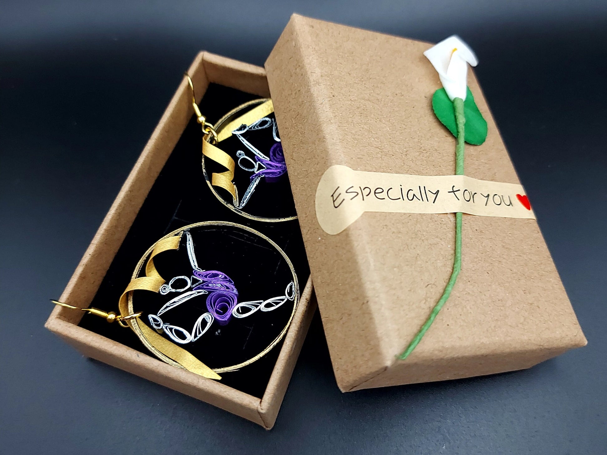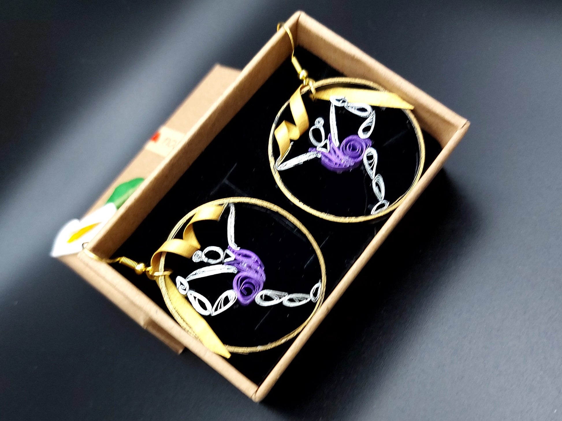 Are you looking for a special gift for someone or yourself? This is exactly what you are looking for. These beatiful hand crafted earrings are made from 1/8" thick quilling paper strips. They are attached to hypoallergenic silver plated earring hooks.