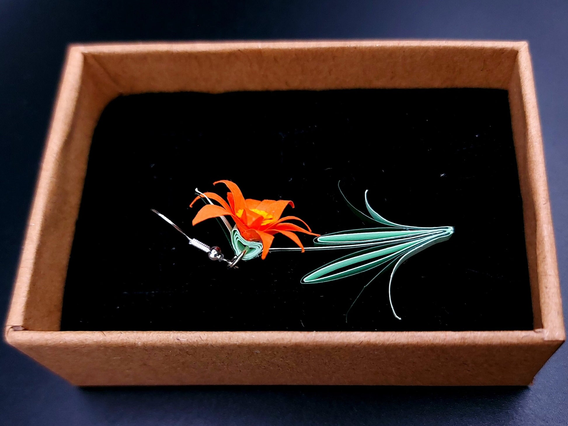 Are you looking for a special gift for someone or yourself? This is exactly what you are looking for. These beautiful hand crafted earrings are made from 1/8" thick quilling paper strips in orange, yellow, green and light green colors. They are attached to hypo-allergenic silver plated earring hooks.