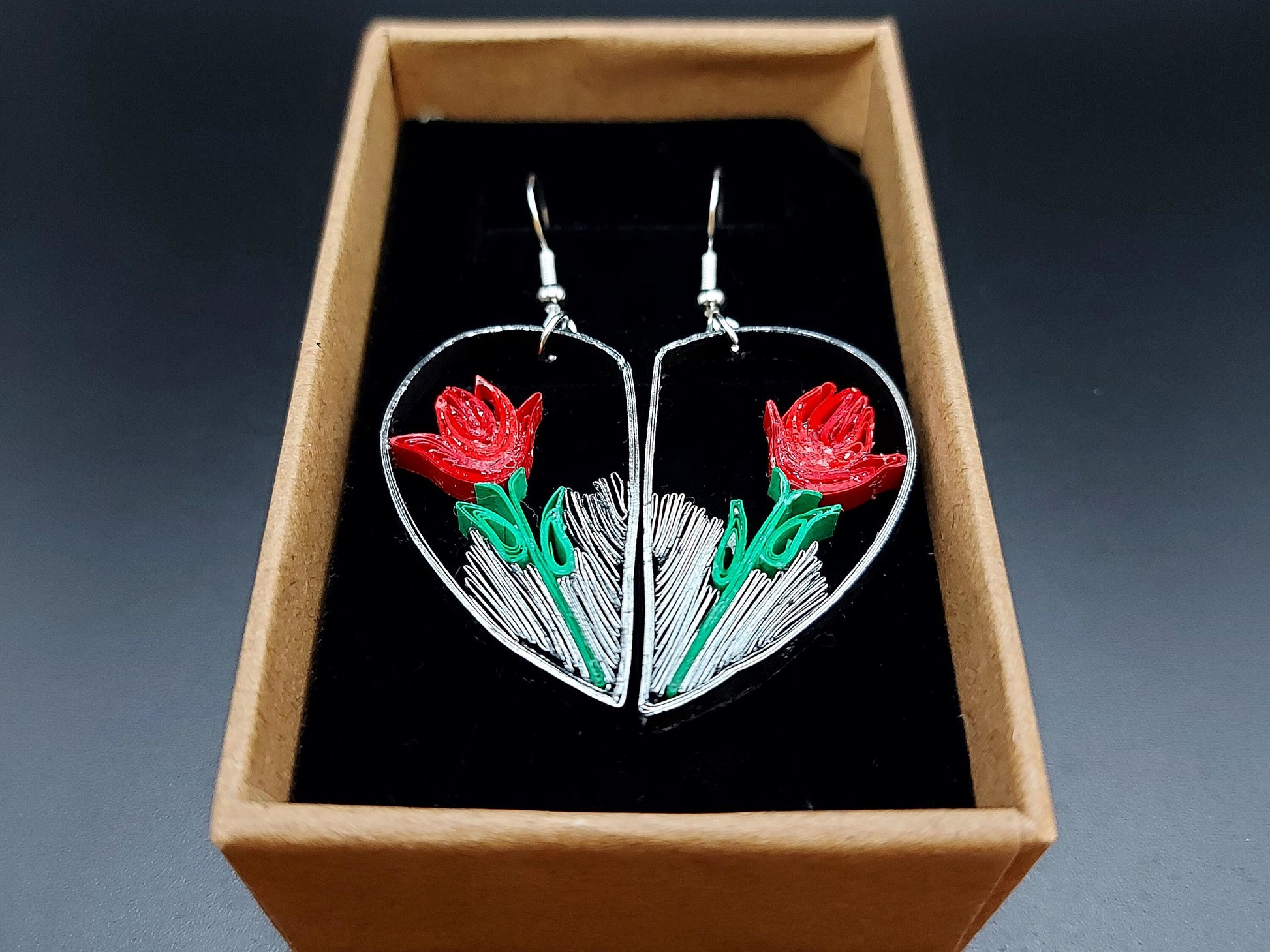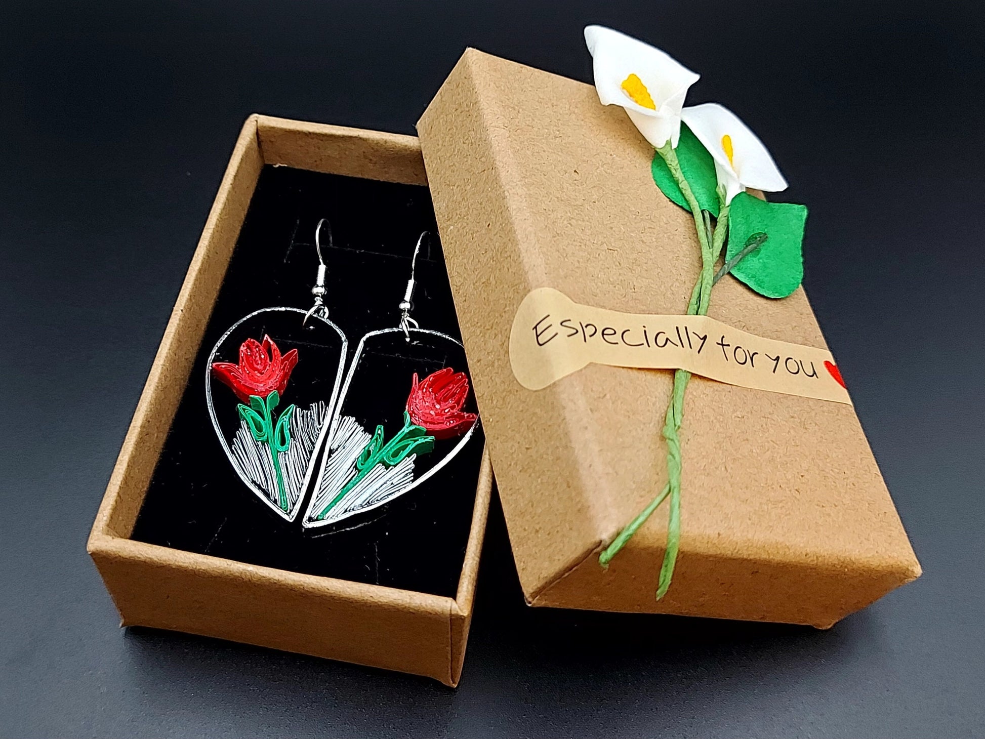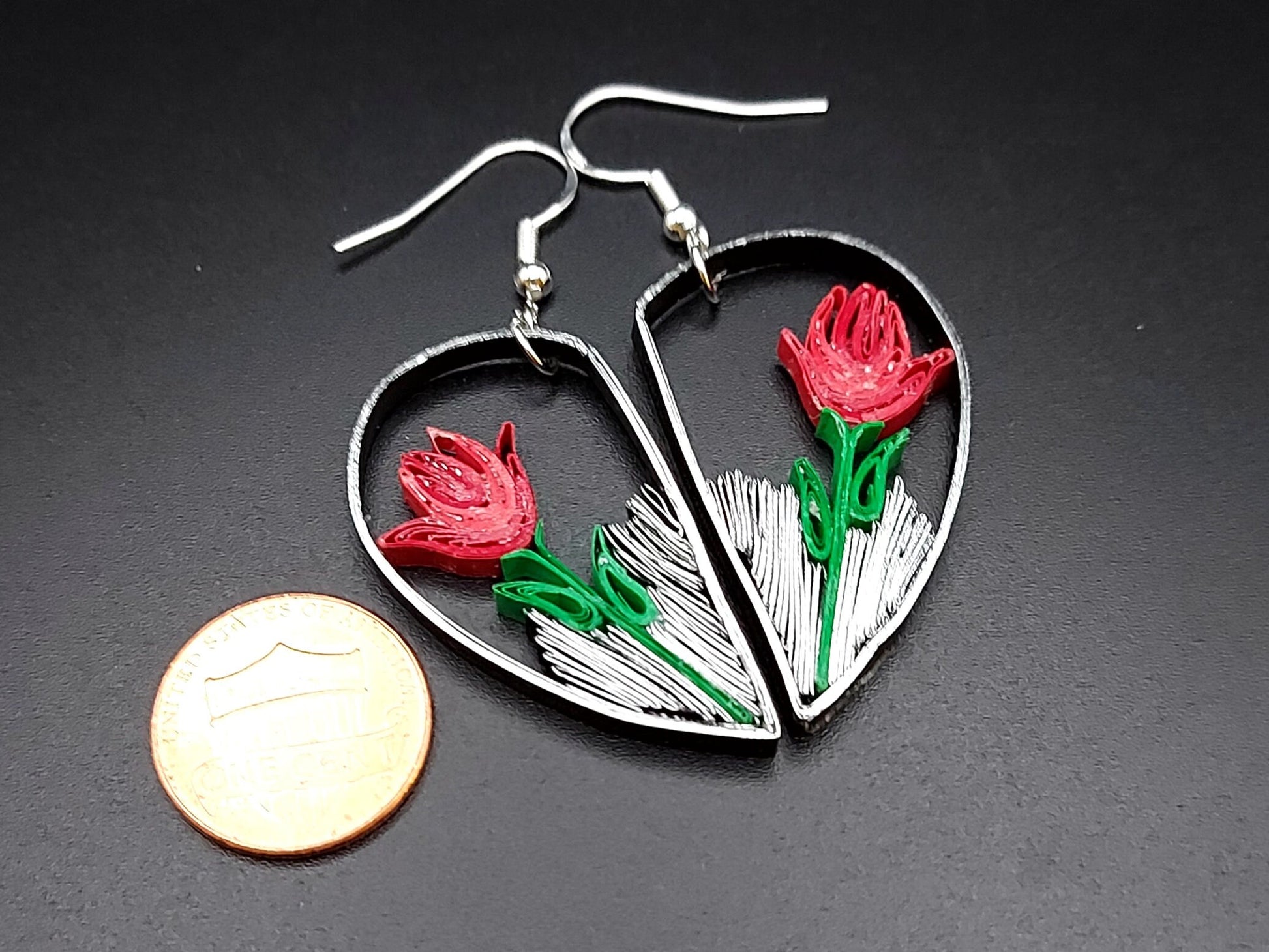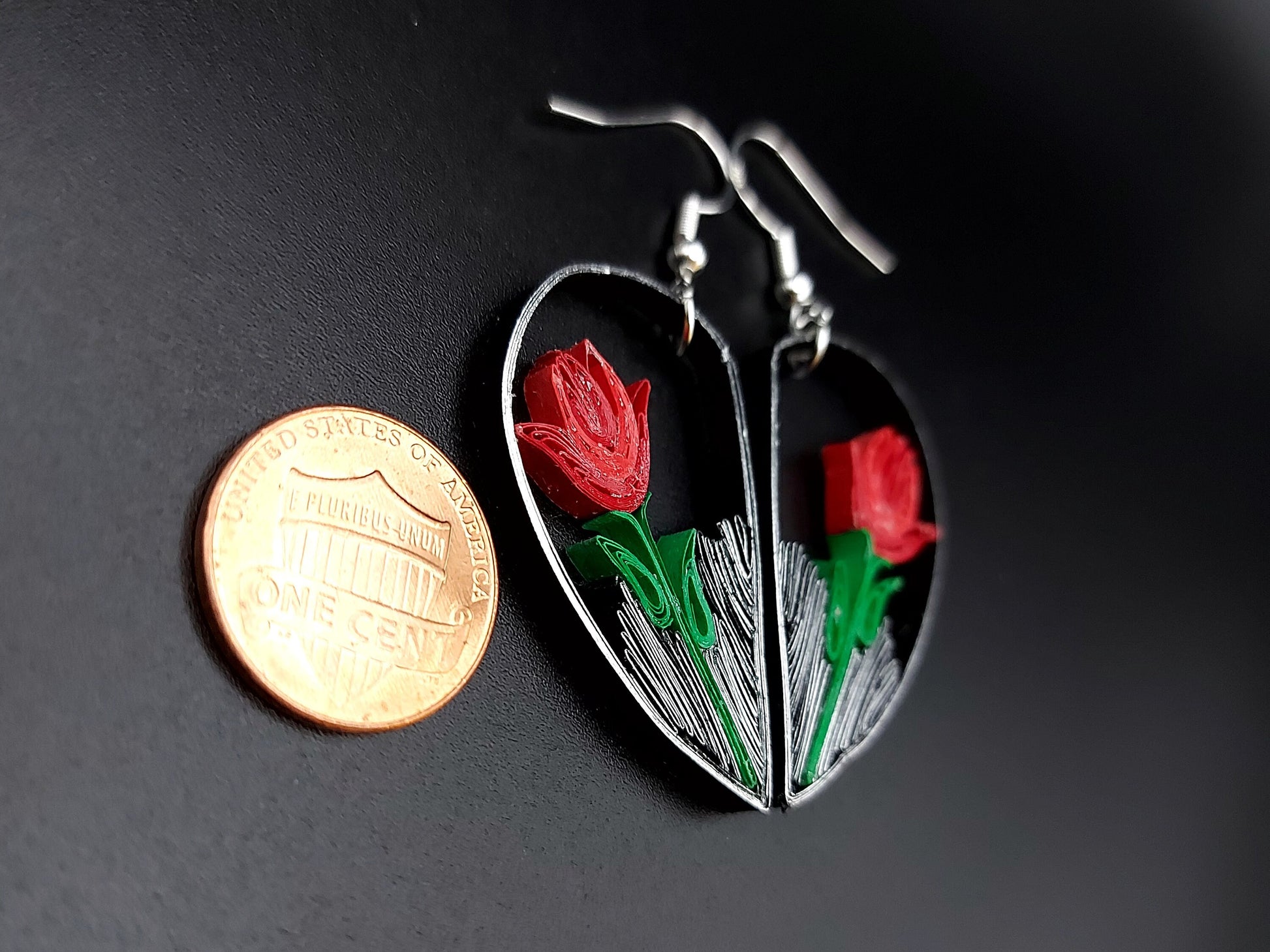 Are you looking for a special gift? This is exactly what you are looking for. These hand crafted earrings are made from 1/8" thick quilling paper strips. They are attached to hypoallergenic silver plated earring hooks.