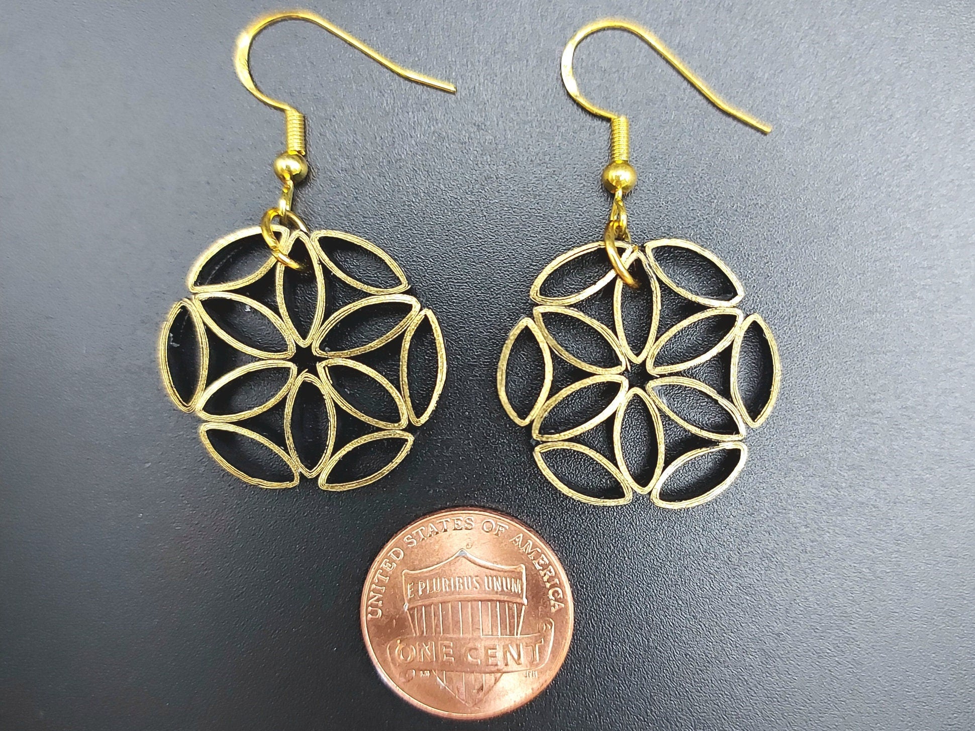 These beatiful hand crafted earrings are made from 1/8" thick quilling paper strips in gold edge black color. The sides and backside of the earrings are black. They are attached to hypo-allergenic silver plated earring hooks.
