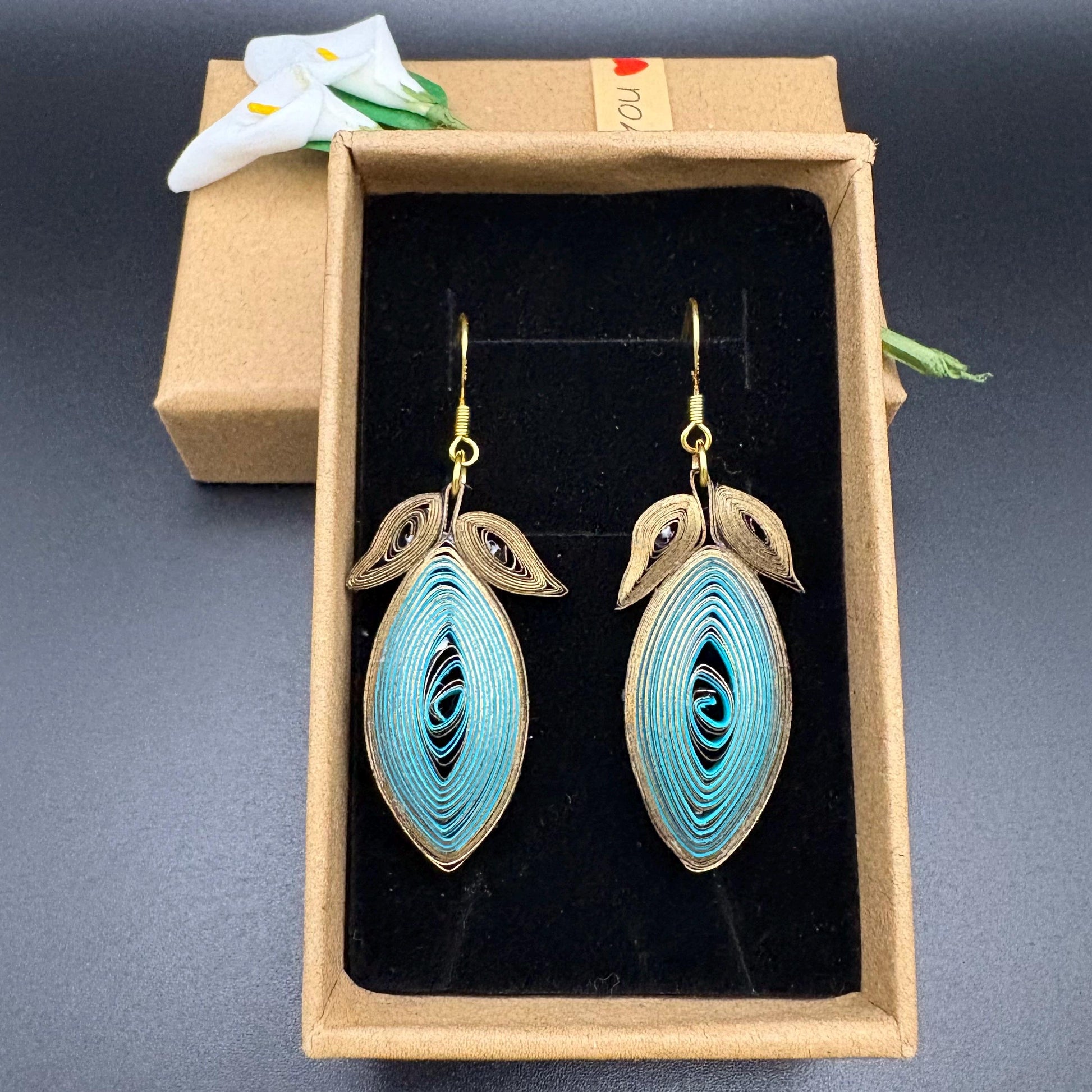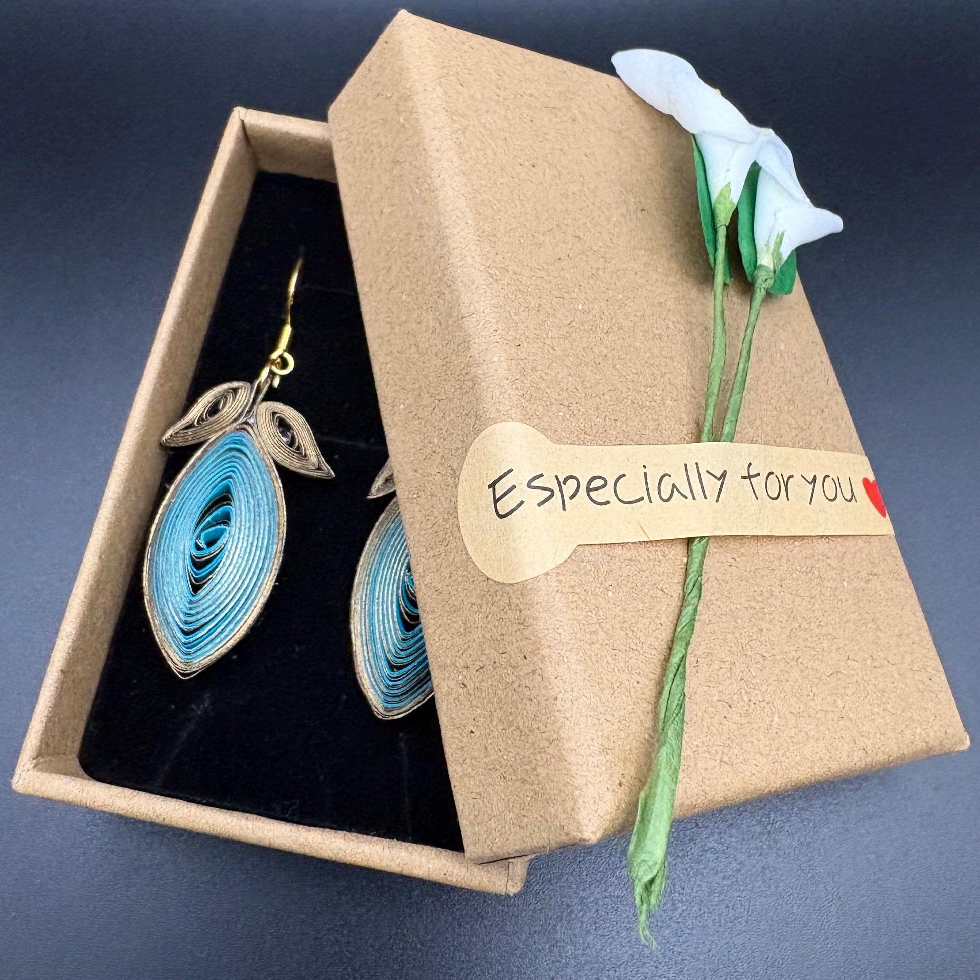 Are you looking for a special gift? This is exactly what you are looking for. These hand crafted earrings are made from 1/8" thick quilling paper strips. They are attached to hypoallergenic silver plated earring hooks.
