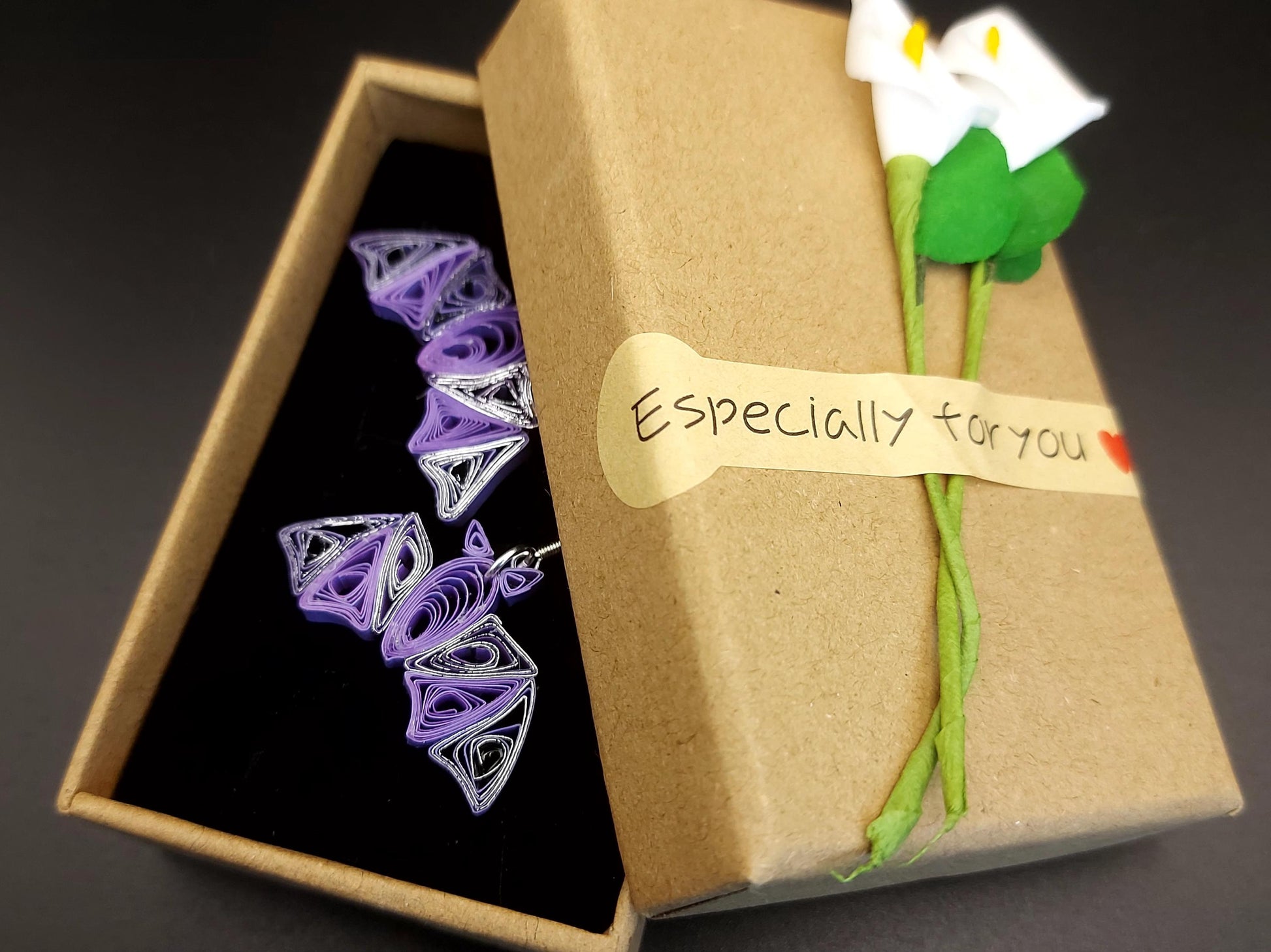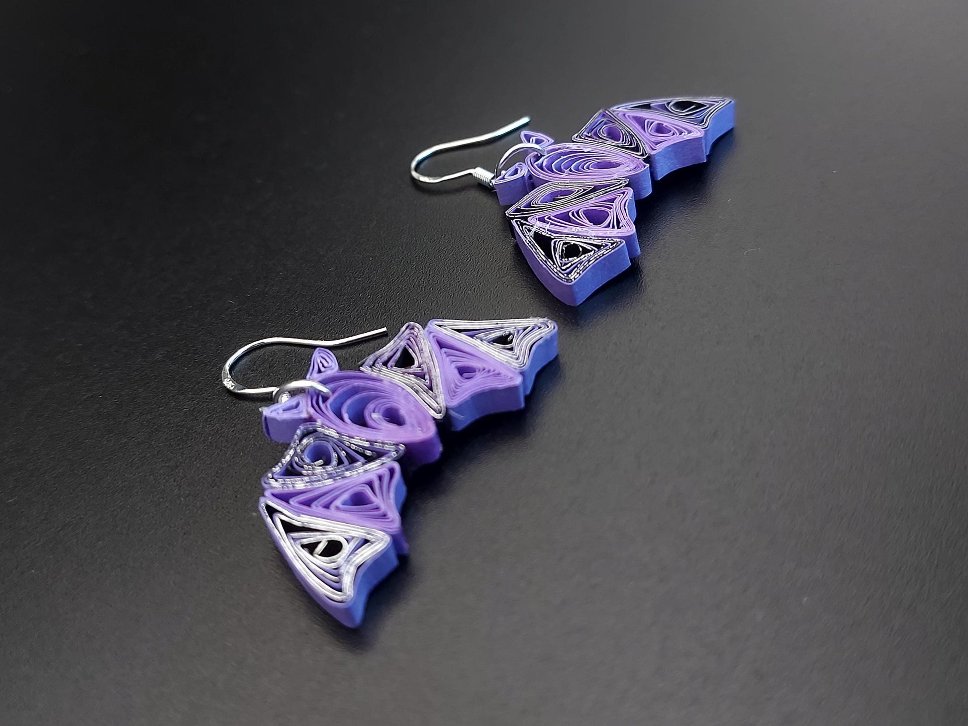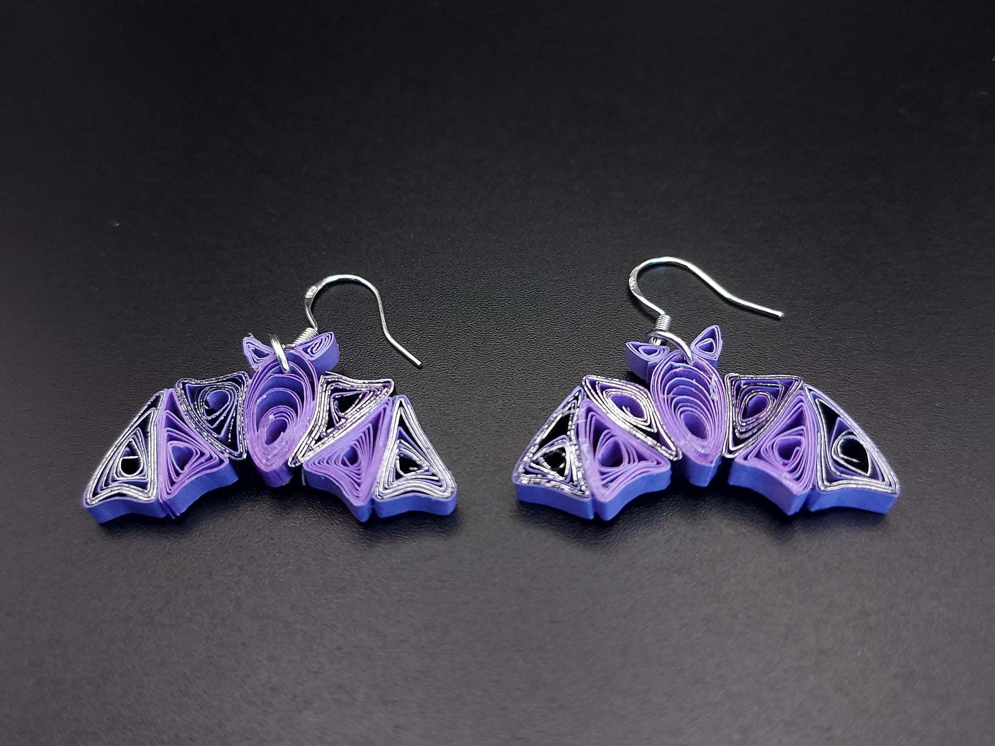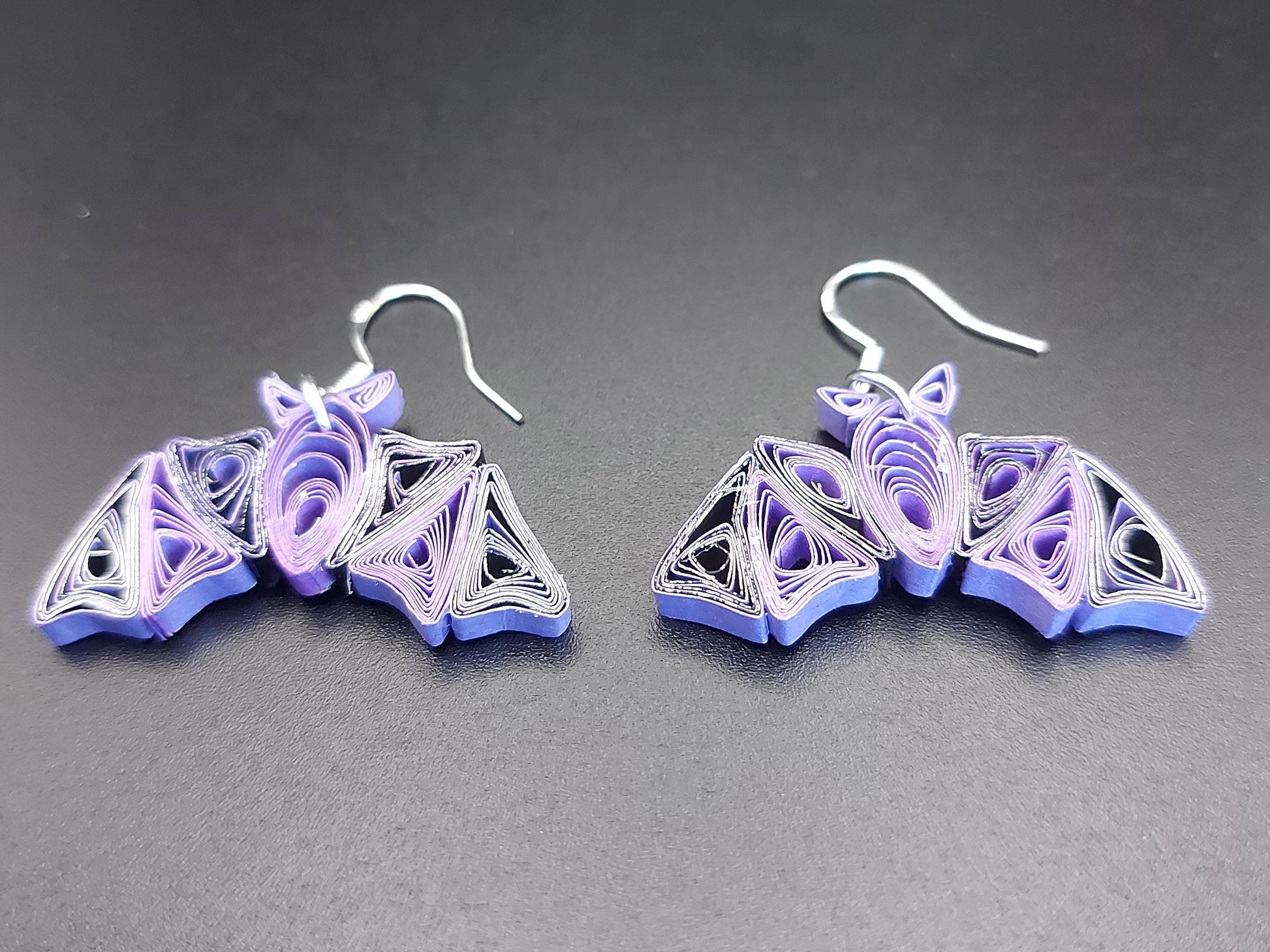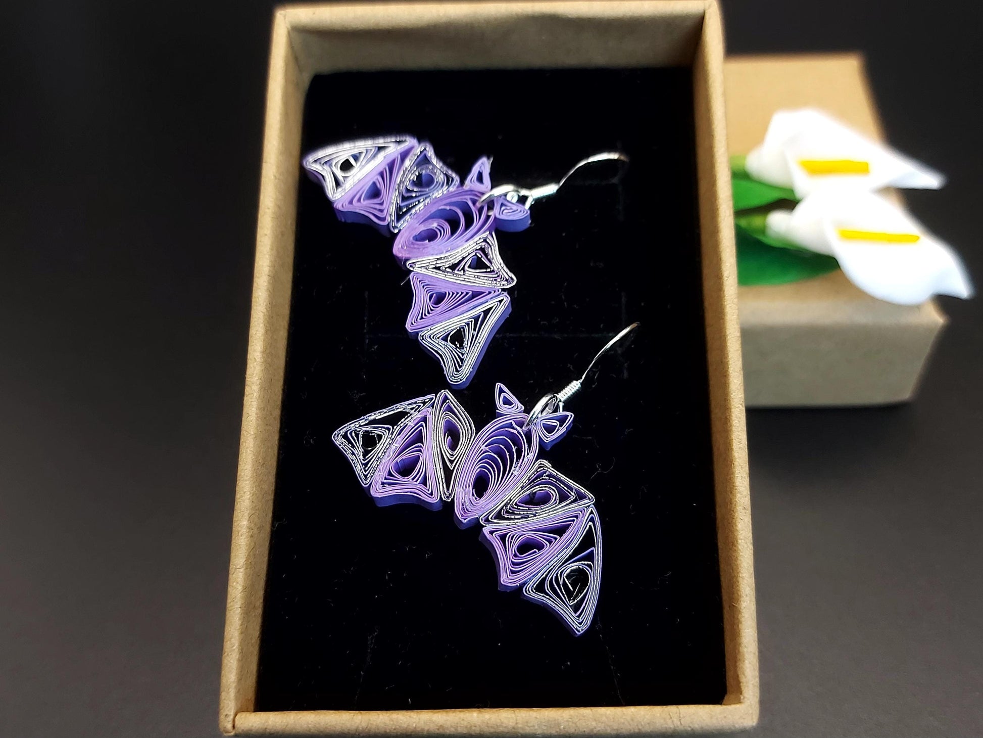 Are you looking for Halloween earrings? This is exactly what you are looking for. These hand crafted earrings are made from 1/8" thick quilling paper strips. They are attached to hypoallergenic silver plated earring hooks.