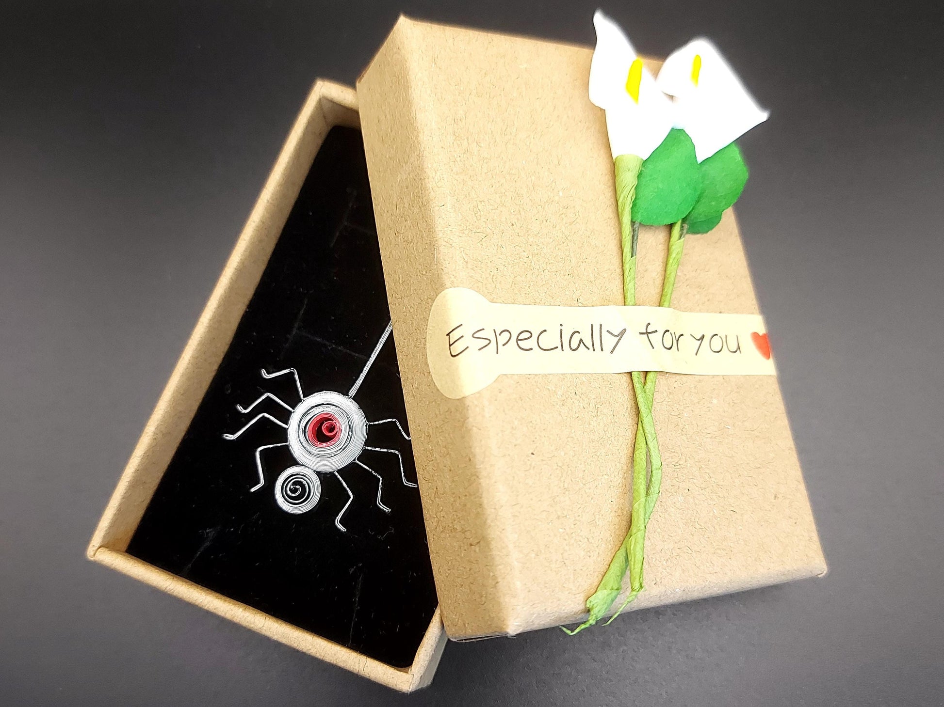 Are you looking for Halloween earrings? This is exactly what you are looking for. These hand crafted earrings are made from 1/8" thick quilling paper strips. They are attached to hypoallergenic silver plated earring hooks. The earrings are coated with clear acrylic sealant to provide sturdiness to the jewelry. But it is not 100% water-proof. Please remove jewelry prior to swimming, bathing, or other water-based activities. In case of water contact, gently dab with a paper towel and allow to dry completely.