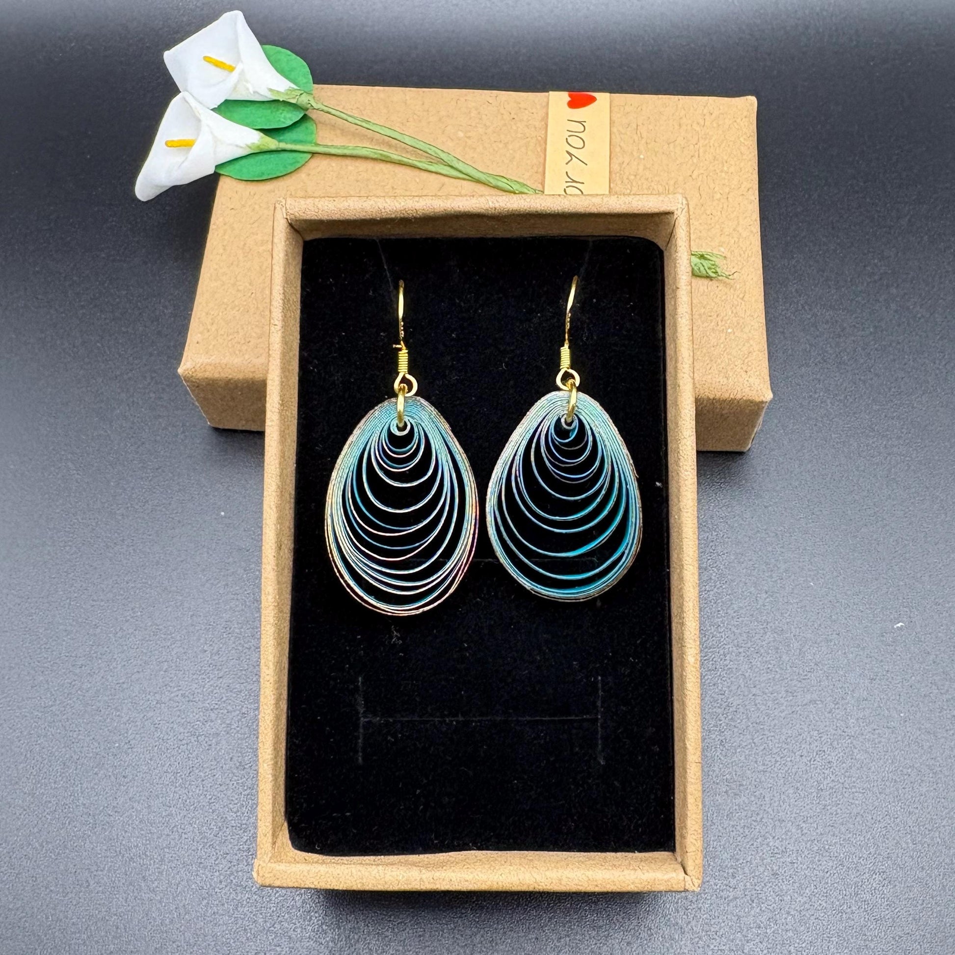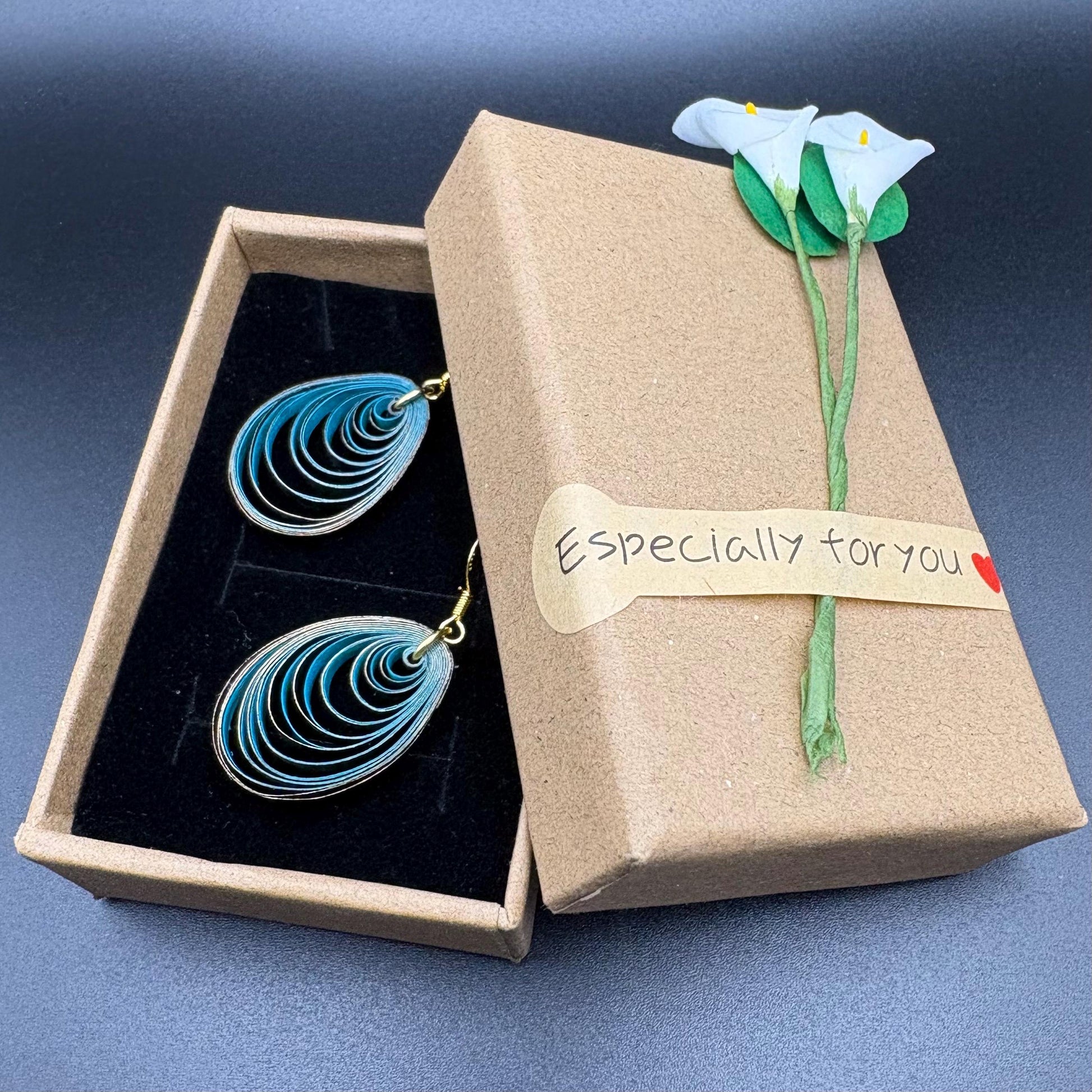 Are you looking for a special gift? This is exactly what you are looking for. These hand crafted earrings are made from 1/8" thick quilling paper strips. They are attached to hypoallergenic silver plated earring hooks.
