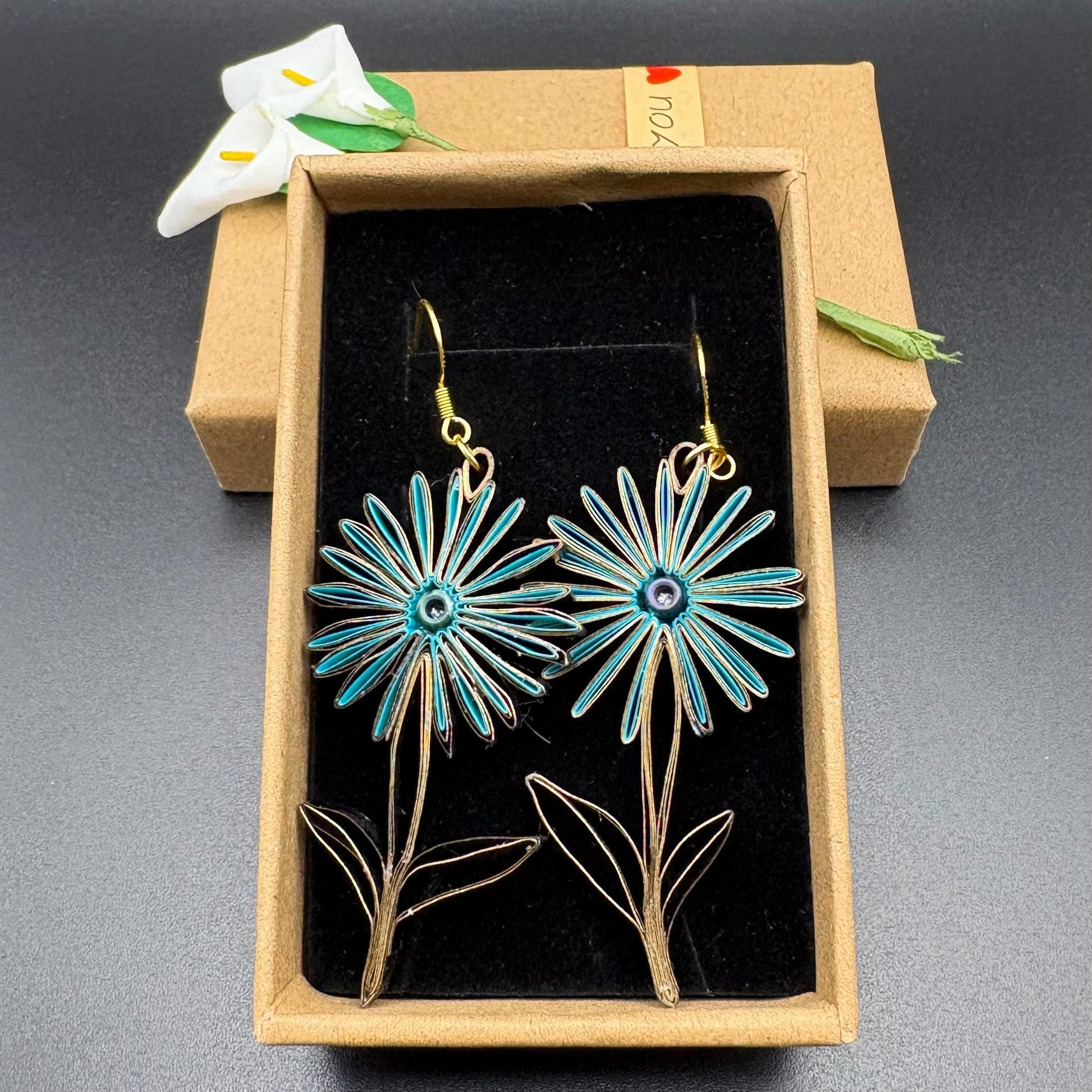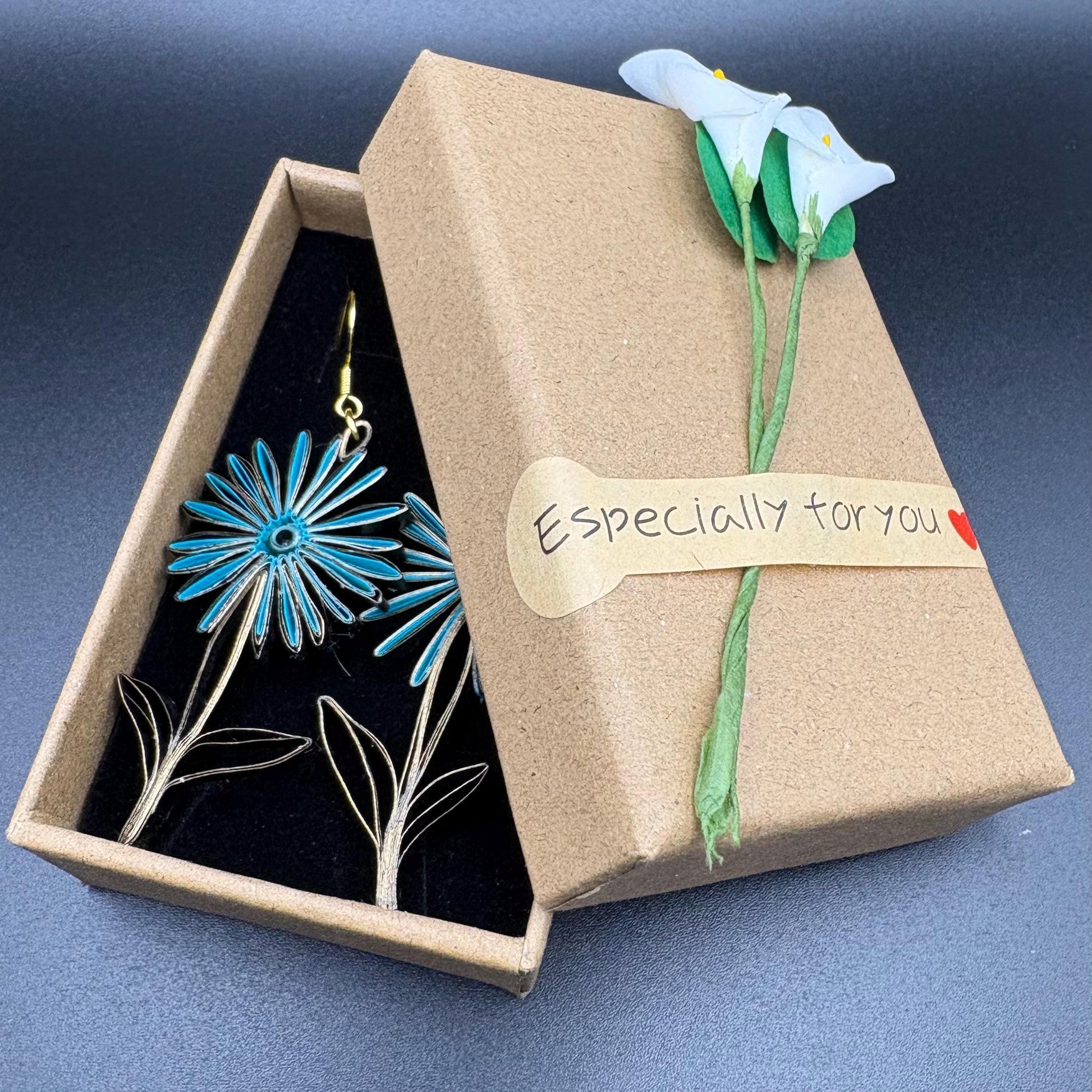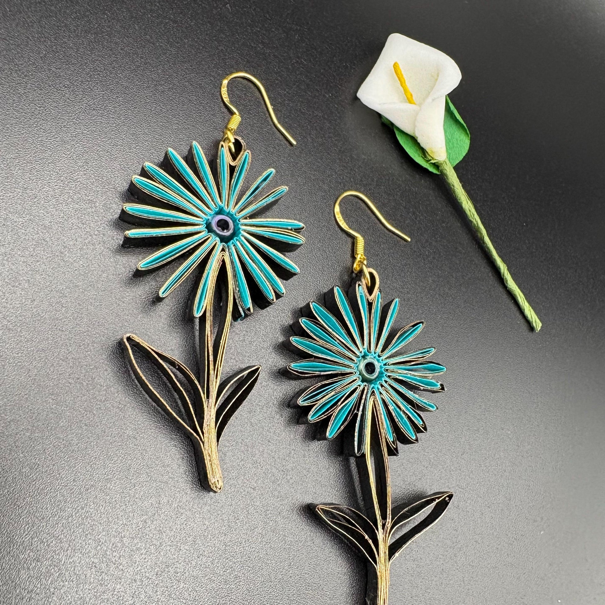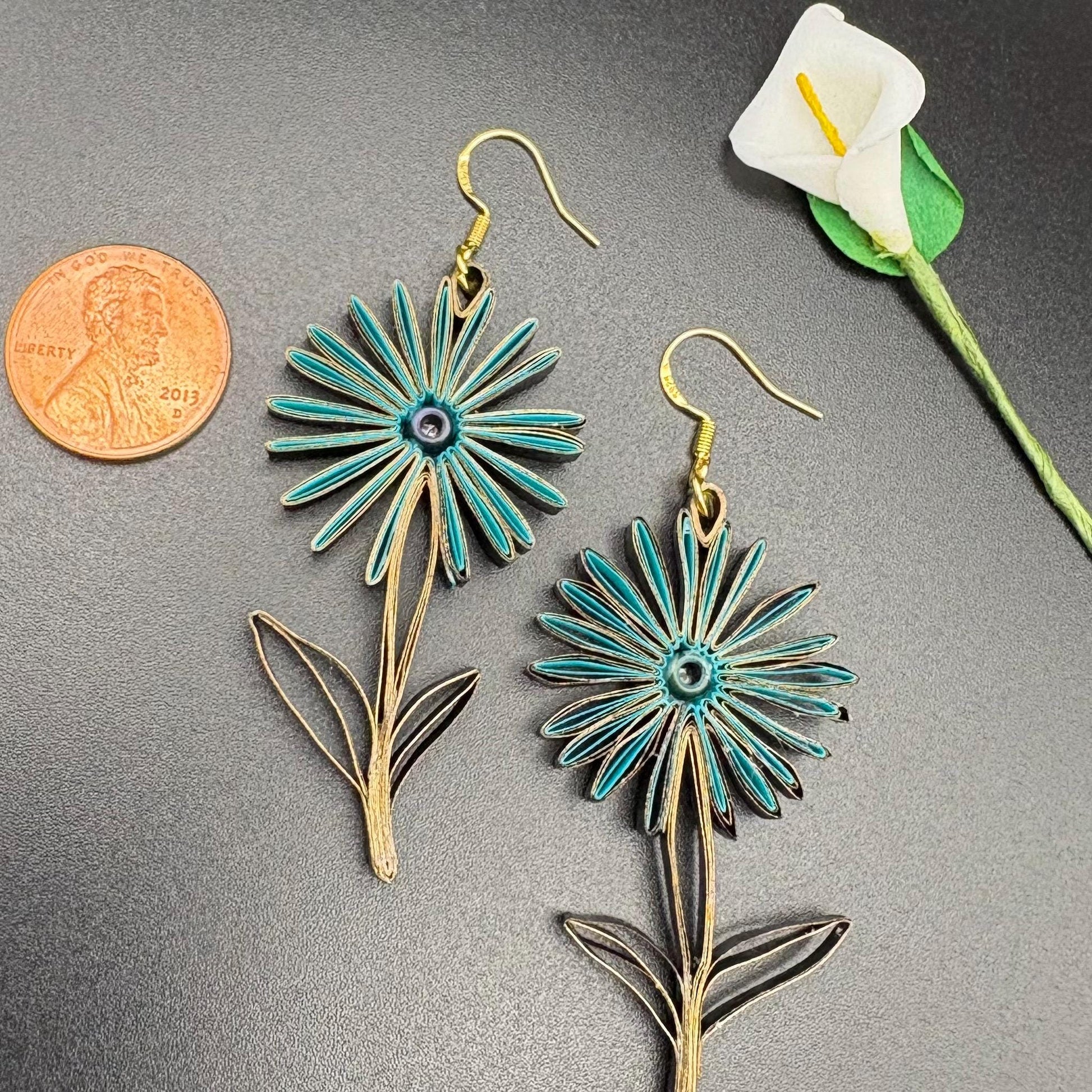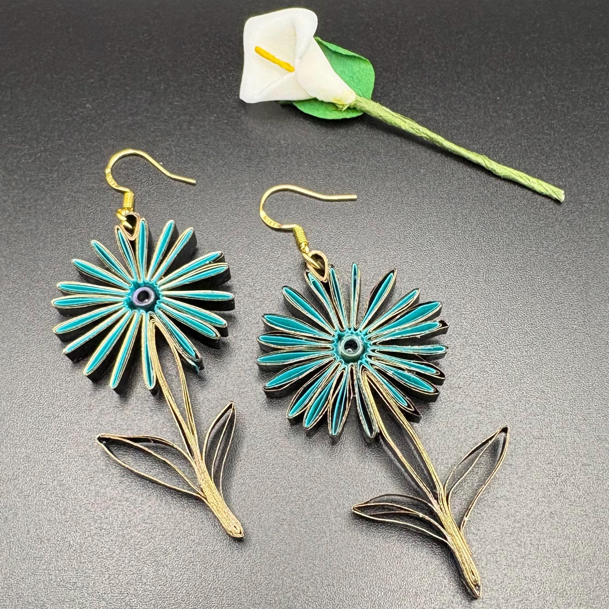 Are you looking for a special gift? This is exactly what you are looking for. These hand crafted earrings are made from 1/8" thick quilling paper strips. They are attached to hypoallergenic silver plated earring hooks.