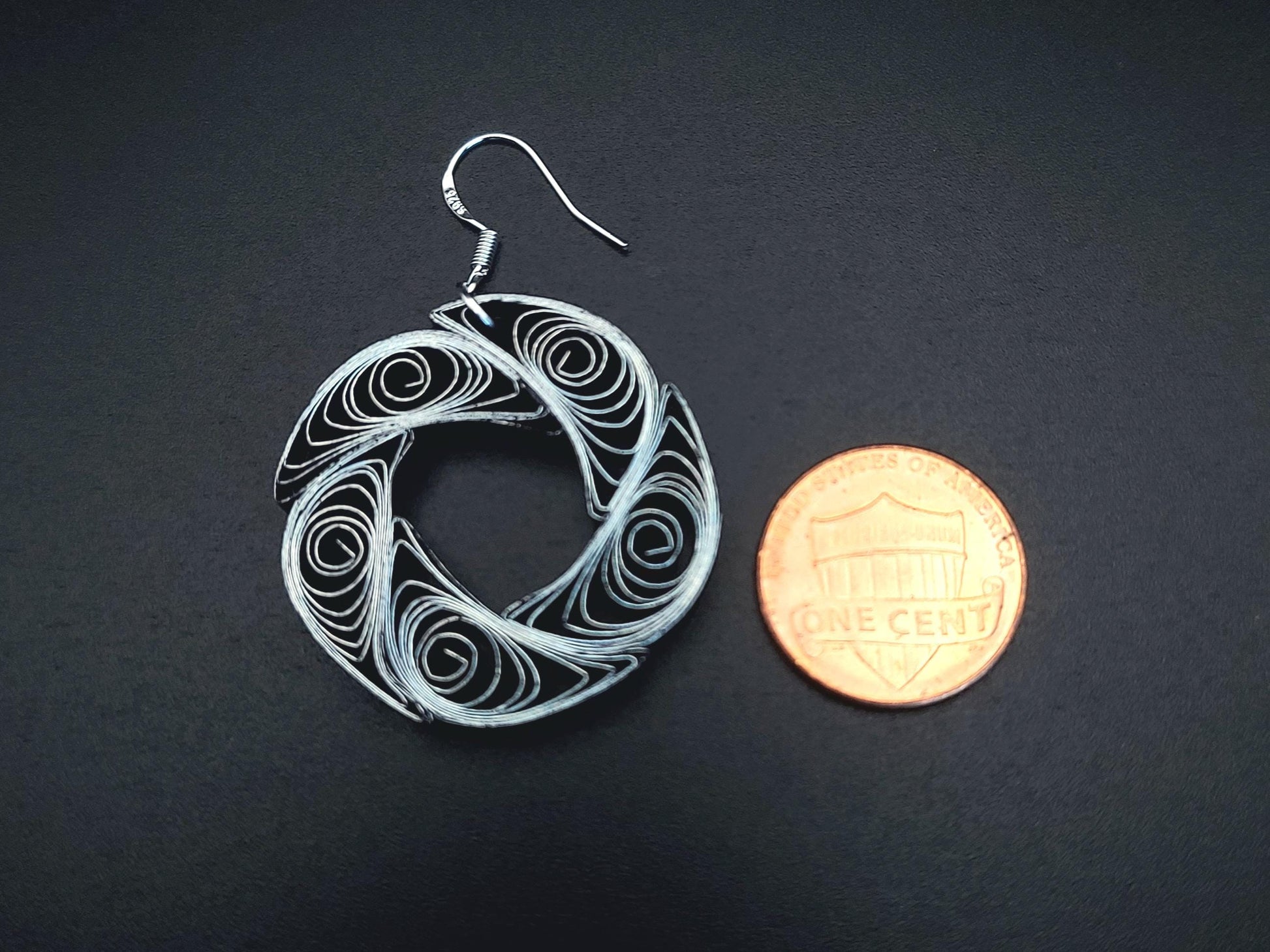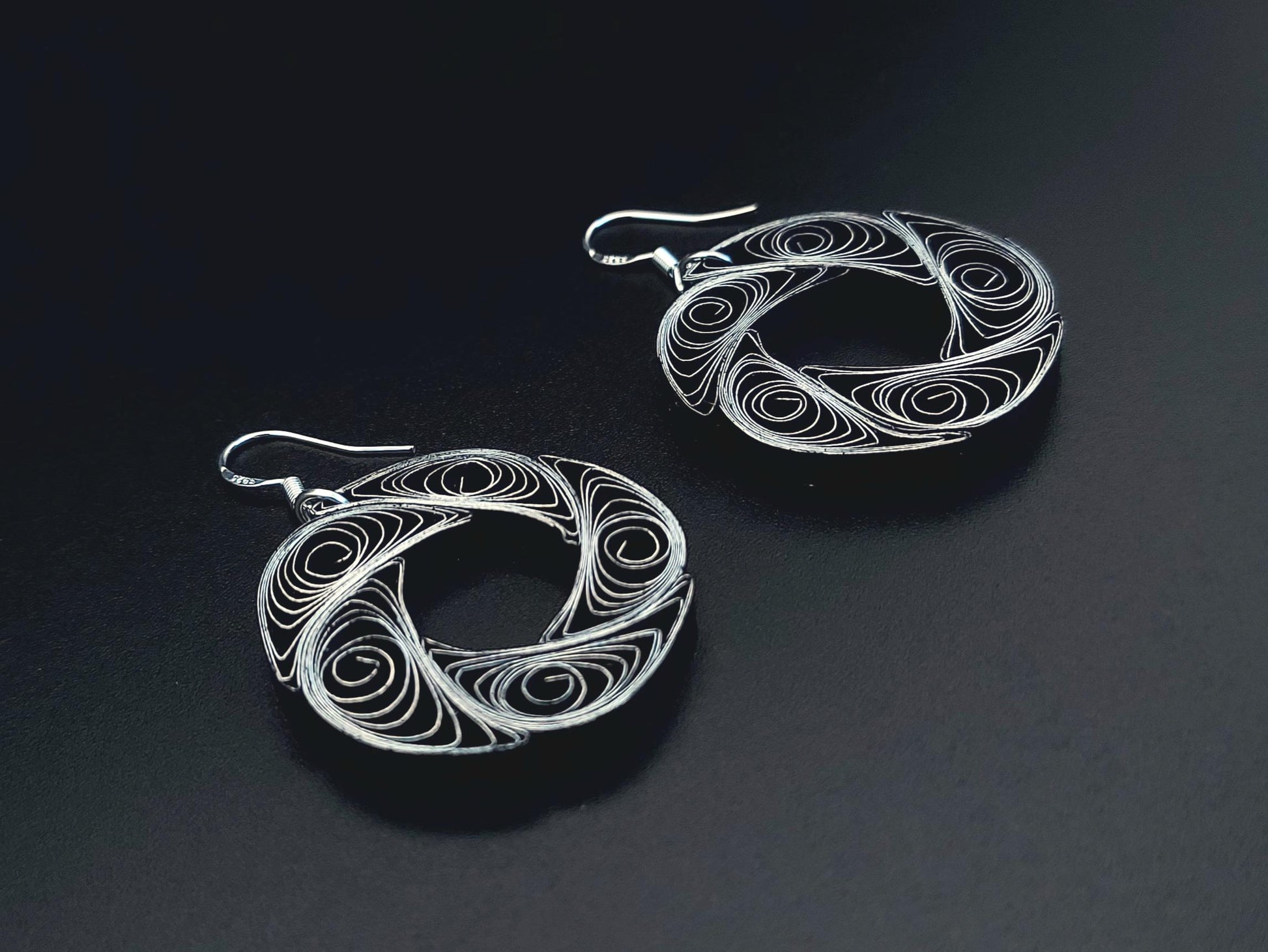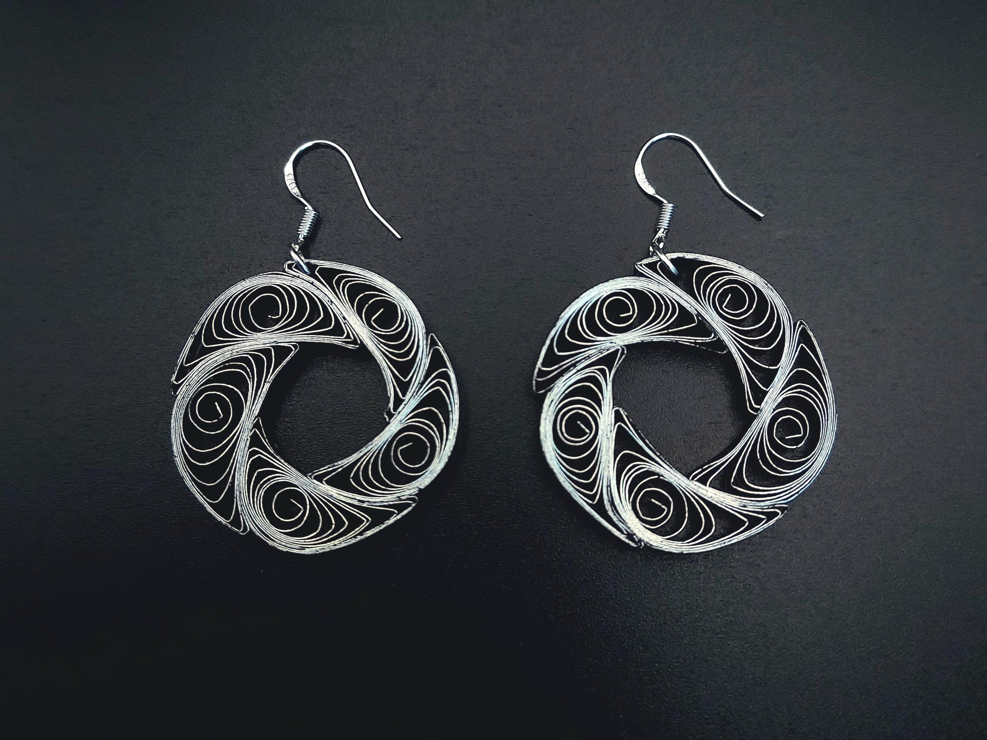 Are you looking for a special gift for someone or yourself? This is exactly what you are looking for. These beatiful hand crafted earrings are made from 1/8" thick quilling paper strips in silver edge black color. The sides and backside of the earrings are black. They are attached to Hypoallergenic Silver Plated Earring Hooks.