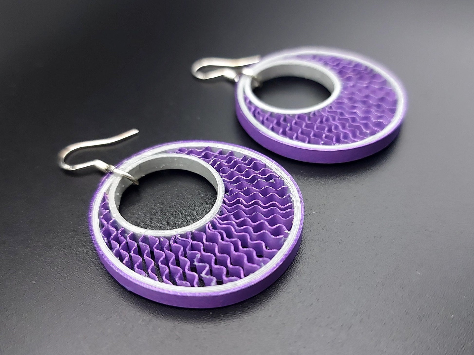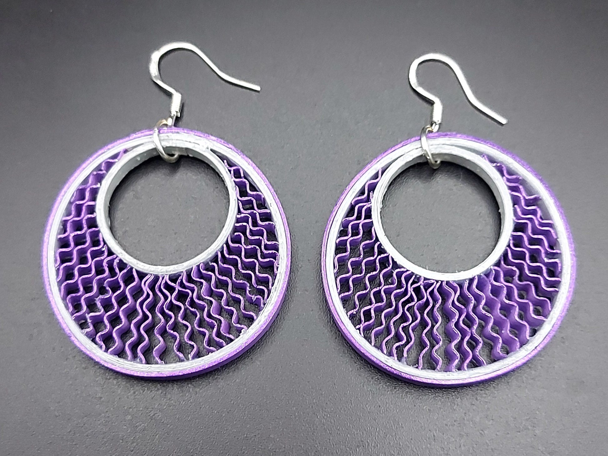 Are you looking for a special gift for someone or yourself? This is exactly what you are looking for. These beautiful hand crafted earrings are made from 1/8" thick quilling paper strips. Two variations are available: gold and gold edged black colors or gold and purple colors. They are attached to hypo-allergenic silver plated earring hooks.