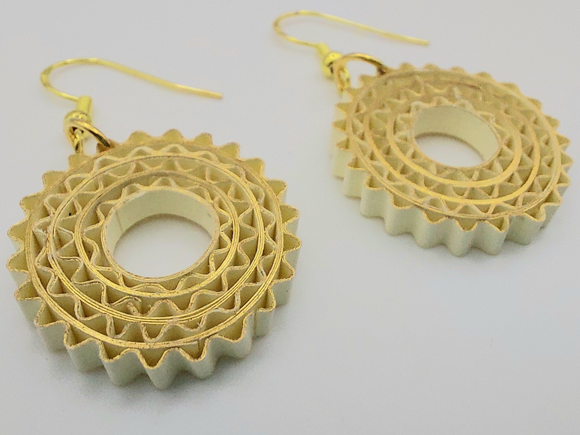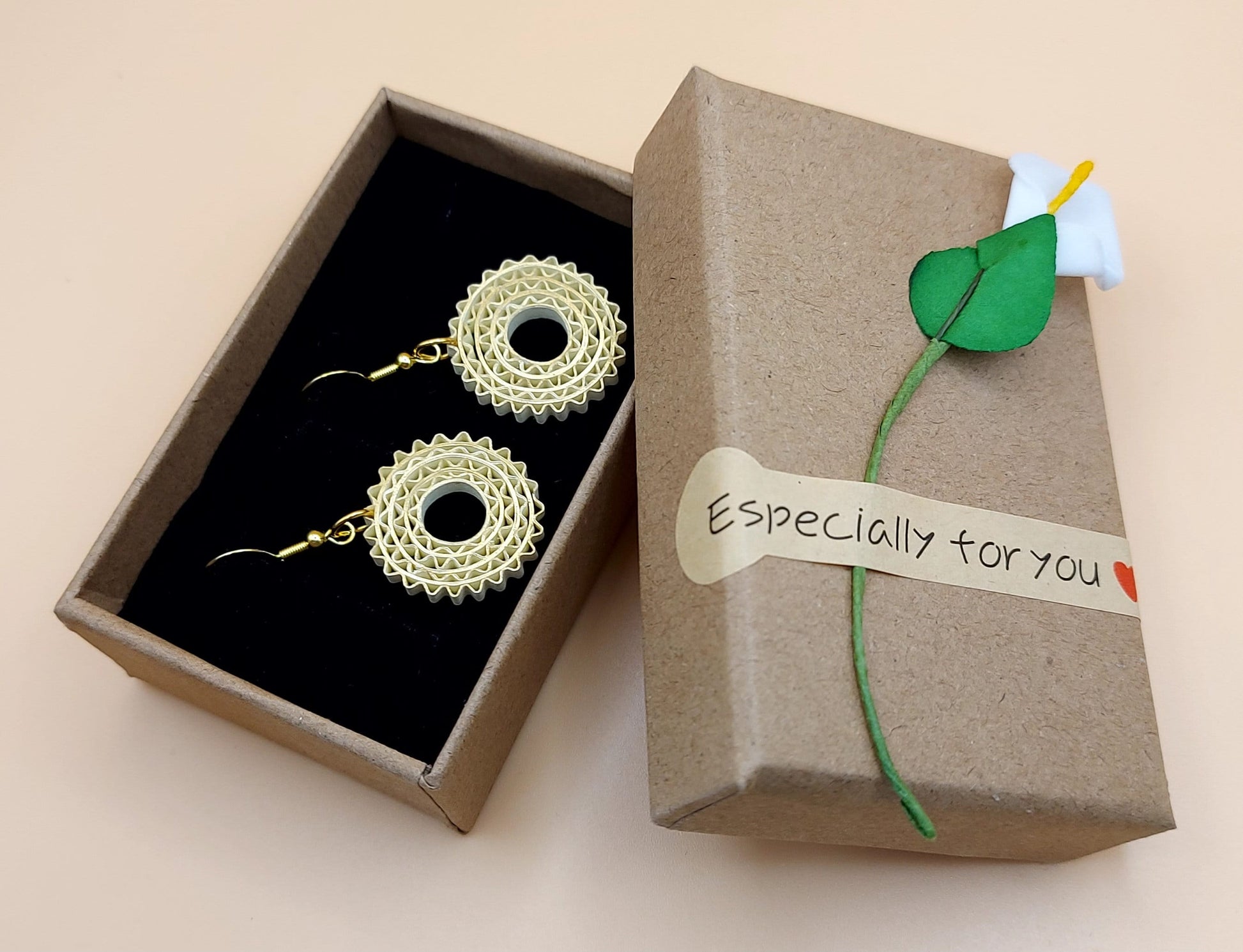 Are you looking for a special gift for someone or yourself? This is exactly what you are looking for. These beatiful handcrafted earrings are made from 1/8" thick quilling paper strips in silver edge black color. The sides and back side of the earrings are black. They are attached to Hypoallergenic silver-plated earring Hooks. The earrings are coated with clear acrylic sealant to provide sturdiness to the jewelry. But it is not 100% water-proof. Please remove Jewelry prior to swimming, bathing, or other water-based activities. In case of water contact, gently dab with a paper towel and allow to dry completely. Available in silver edge on black, gold edge on black and gold edge on ivory colors.